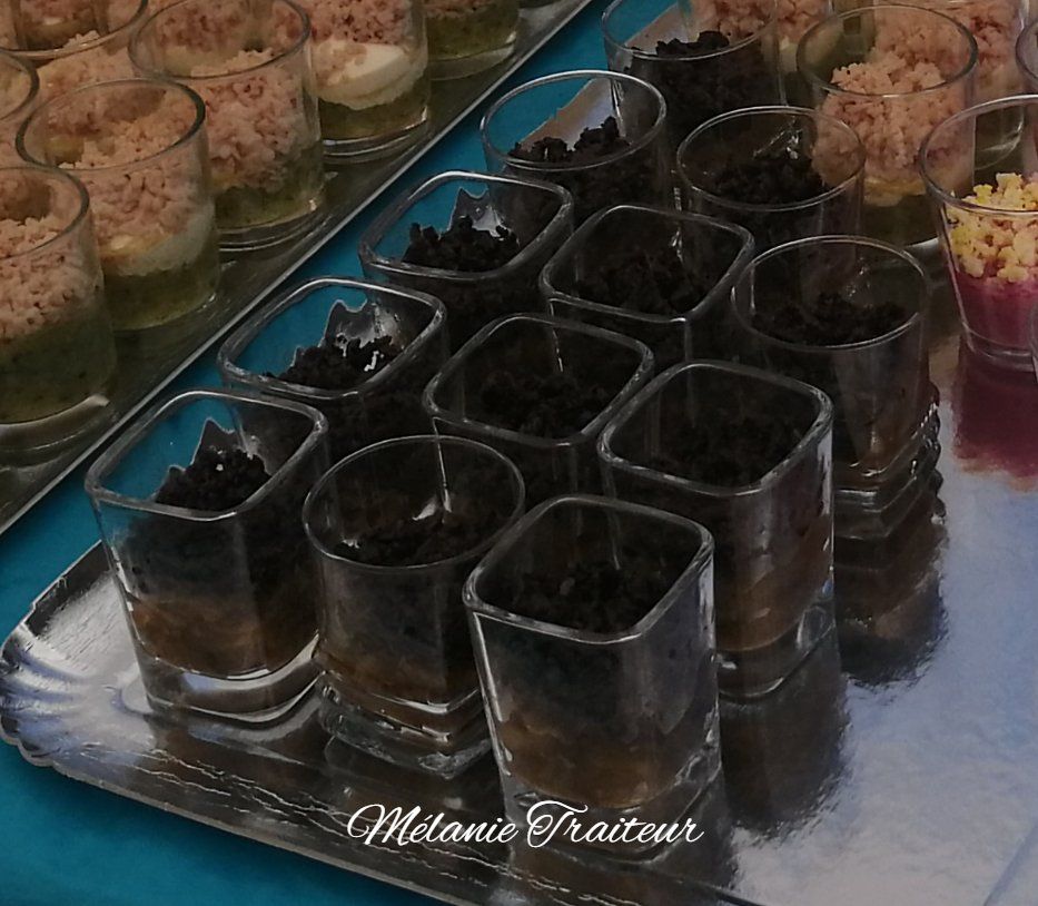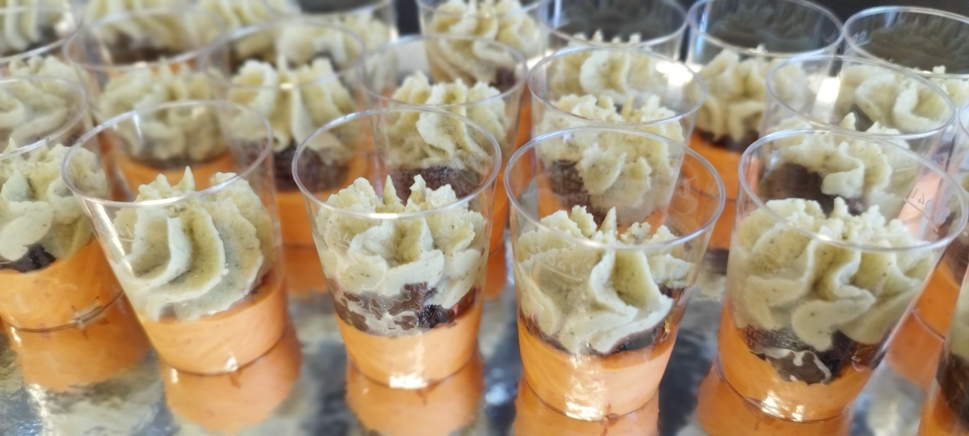 Verrines de velouté de butternut et magret de canard fumé 13 euros les 10 pièces